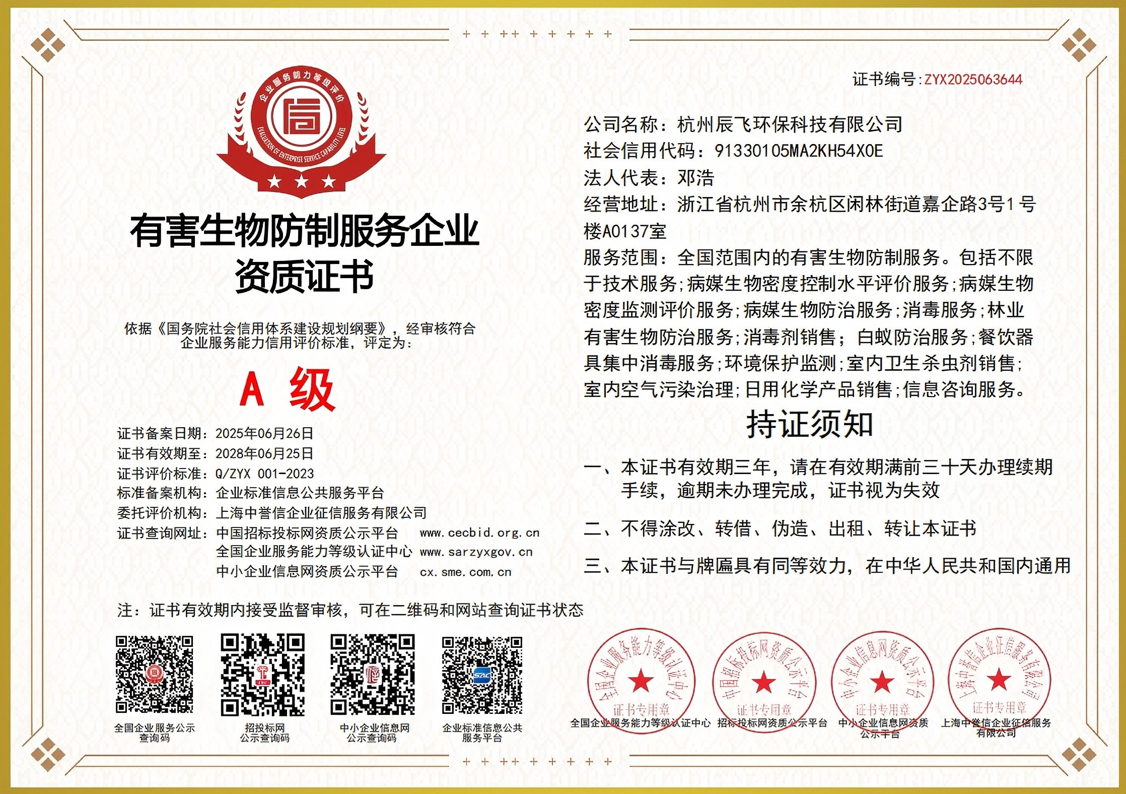 杭州辰飛環??萍?/b> 專業蟲害防治